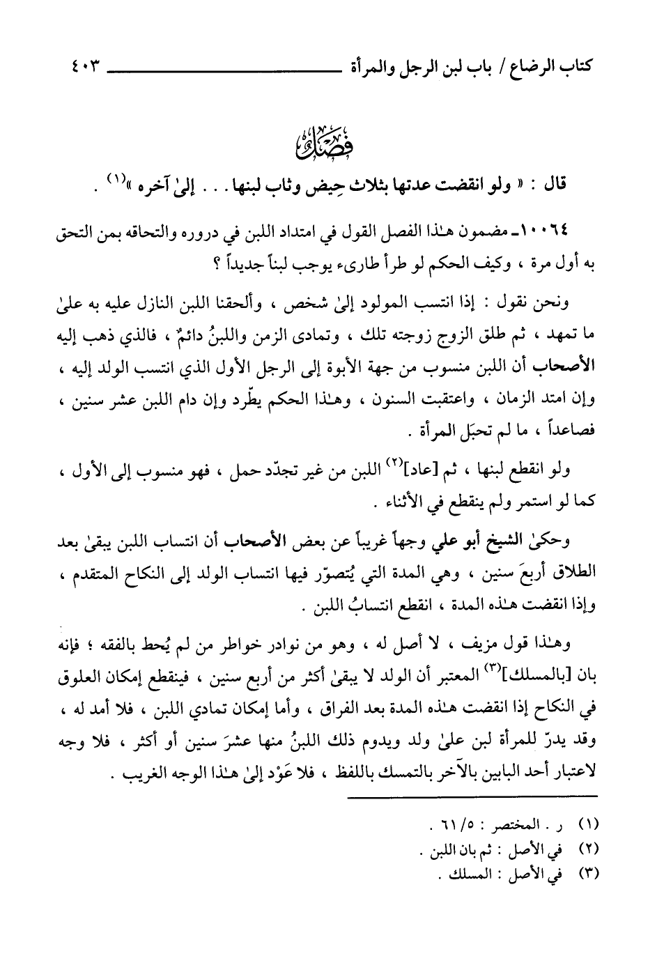 10064 - مضمون هذا الفصل القول في امتداد اللبن في دروره والتحاقه بمن التحق به أول مرة، وكيف الحكم لو طرأ طارىء يوجب لبناً جديداً؟