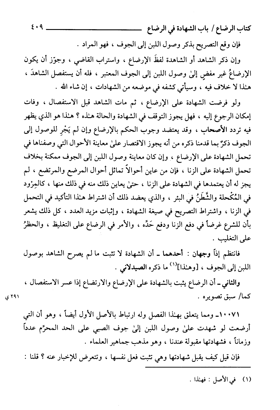 10071 - ومما يتعلق بهذا الفصل وله ارتباط بالأصل الأول أيضاً، وهو أن التي أرضعت لو شهدت على وصول اللبن إلى جوف الصبي على الحد المحرِّم عدداً وزماناً، فشهادتها مقبولة عندنا، وهو مذهب جماهير العلماء.