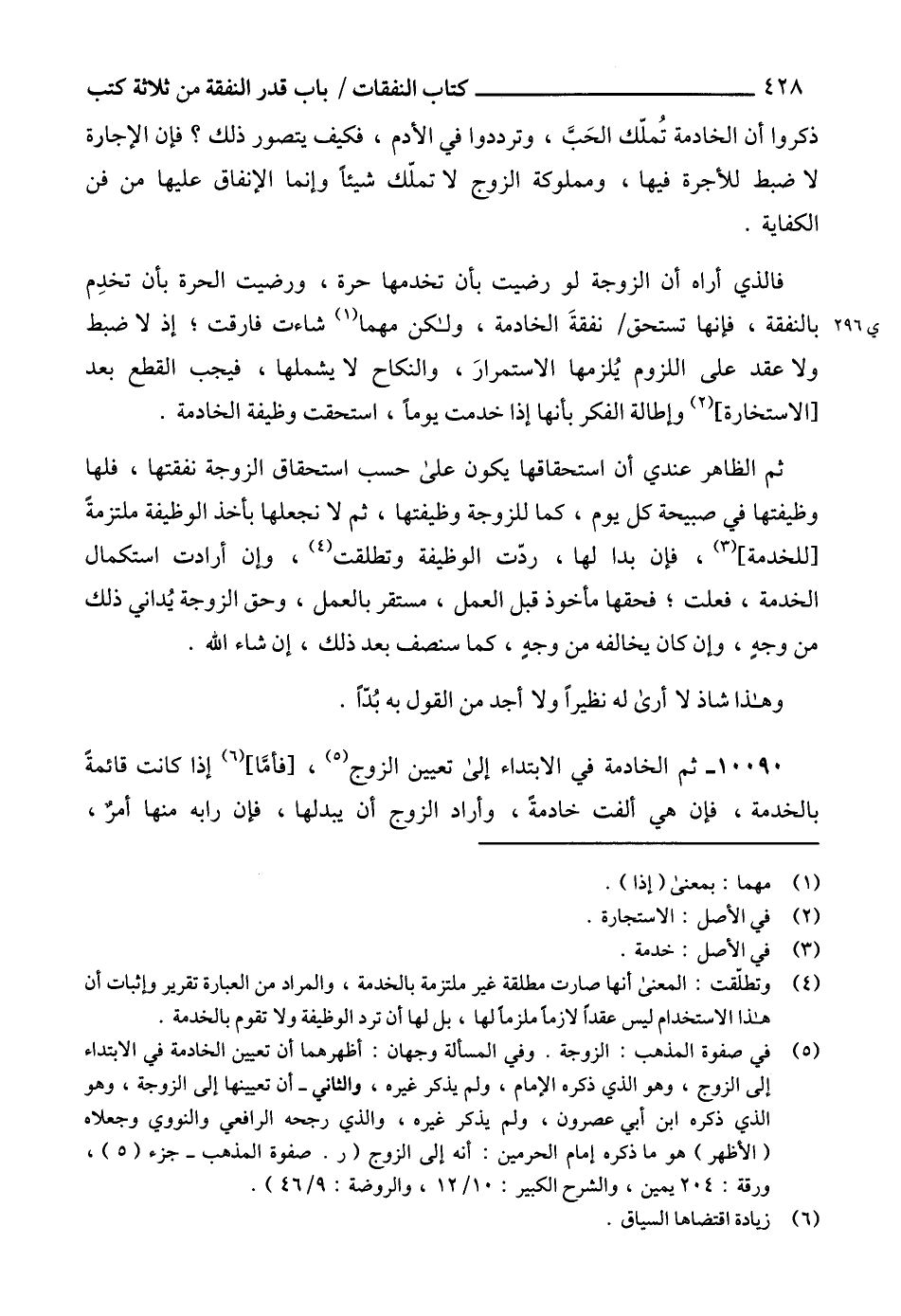 (4) وتطلّقت: المعنى أنها صارت مطلقة غير ملتزمة بالخدمة، والمراد من العبارة تقرير وإثبات أن هذا الاستخدام ليس عقداً لازماً ملزماً لها، بل لها أن ترد الوظيفة ولا تقوم بالخدمة.