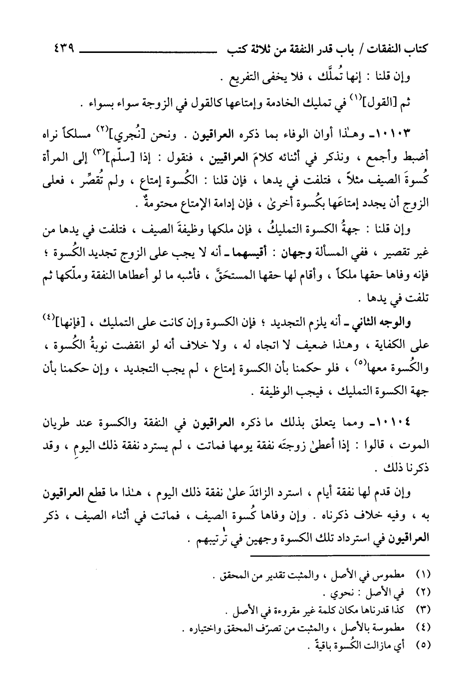 10104 - ومما يتعلق بذلك ما ذكره العراقيون في النفقة والكسوة عند طريان الموت، قالوا: إذا أعطى زوجتَه نفقة يومها فماتت، لم يسترد نفقة ذلك اليومِ، وقد ذكرنا ذلك.
