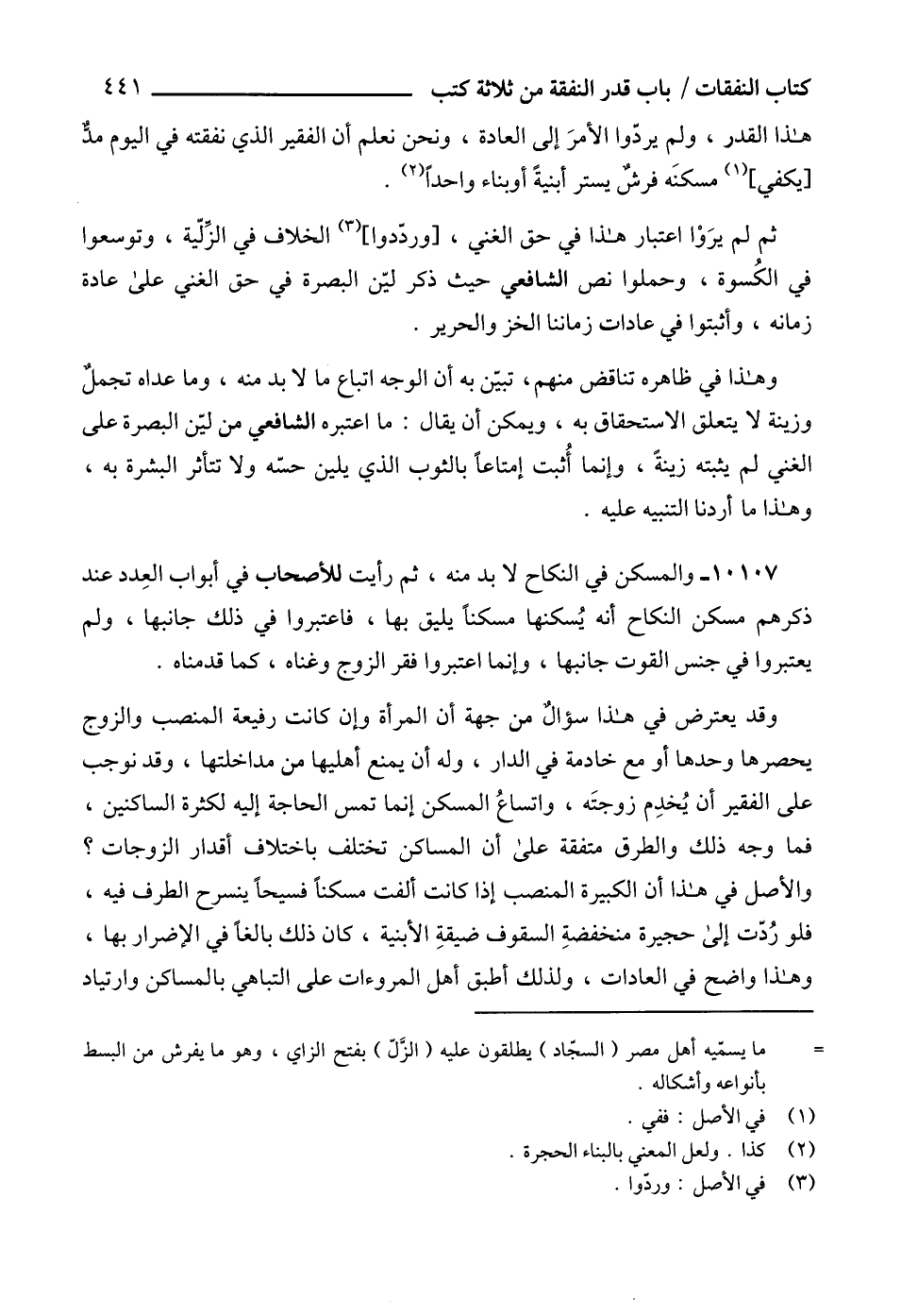 هذا القدر، ولم يردّوا الأمرَ إلى العادة، ونحن نعلم أن الفقير الذي نفقته في اليوم مدٌّ [يكفي] (1) مسكنَه فرشٌ يستر أبنيةً أو بناء واحداً (2).