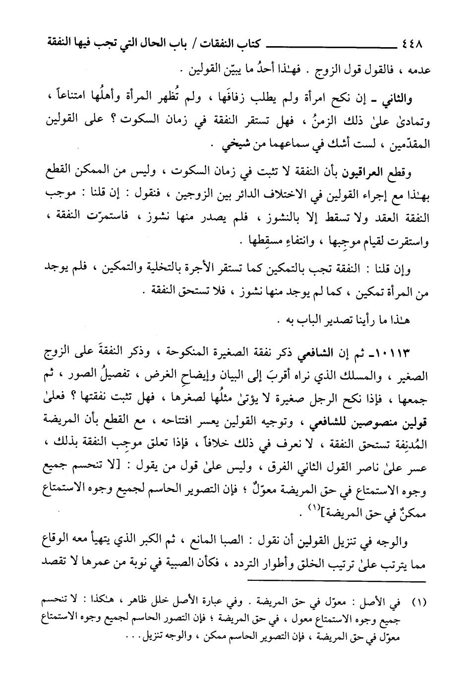 وقطع العراقيون بأن النفقة لا تثبت في زمان السكوت، وليس من الممكن القطع بهذا مع إجراء القولين في الاختلاف الدائر بين الزوجين، فنقول: إن قلنا: موجب النفقة العقد ولا تسقط إلا بالنشوز، فلم يصدر منها نشوز، فاستمرّت النفقة، واستقرت لقيام موجِبها، وانتفاءِ مسقِطها.