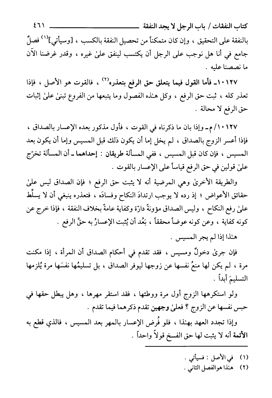 10127 - فأما القول فيما يتعلق حق الرفع بتعذره (2)، فالقوت هو الأصل، فإذا تعذر كله، ثبت حق الرفع، وكل هذه الفصول وما يتبعها من الفروع تبنى على إثبات حق الرفع لا محالة.