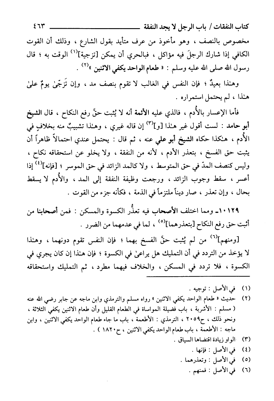 مخصوص بالنصف، وهو مأخوذ من عرف متأيد بقول الشارع، وذلك أن القوت الكافي إذا شارك الرجلَ فيه مؤاكل، فبالحري أن يمكن [تزجية] (1) الوقت به؛ قال رسول الله صلى الله عليه وسلم: " طعام الواحد يكفي الاثنين " (2).