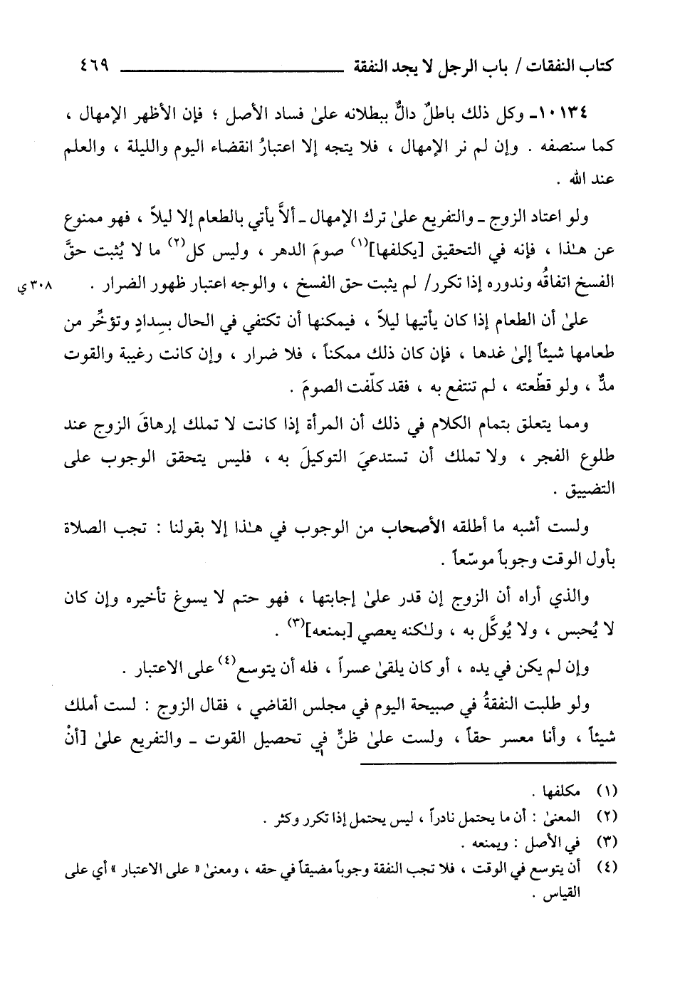 (4) أن يتوسع في الوقت، فلا تجب النفقة وجوباً مضيقاً في حقه، ومعنى "على الاعتبار" أي على القياس.