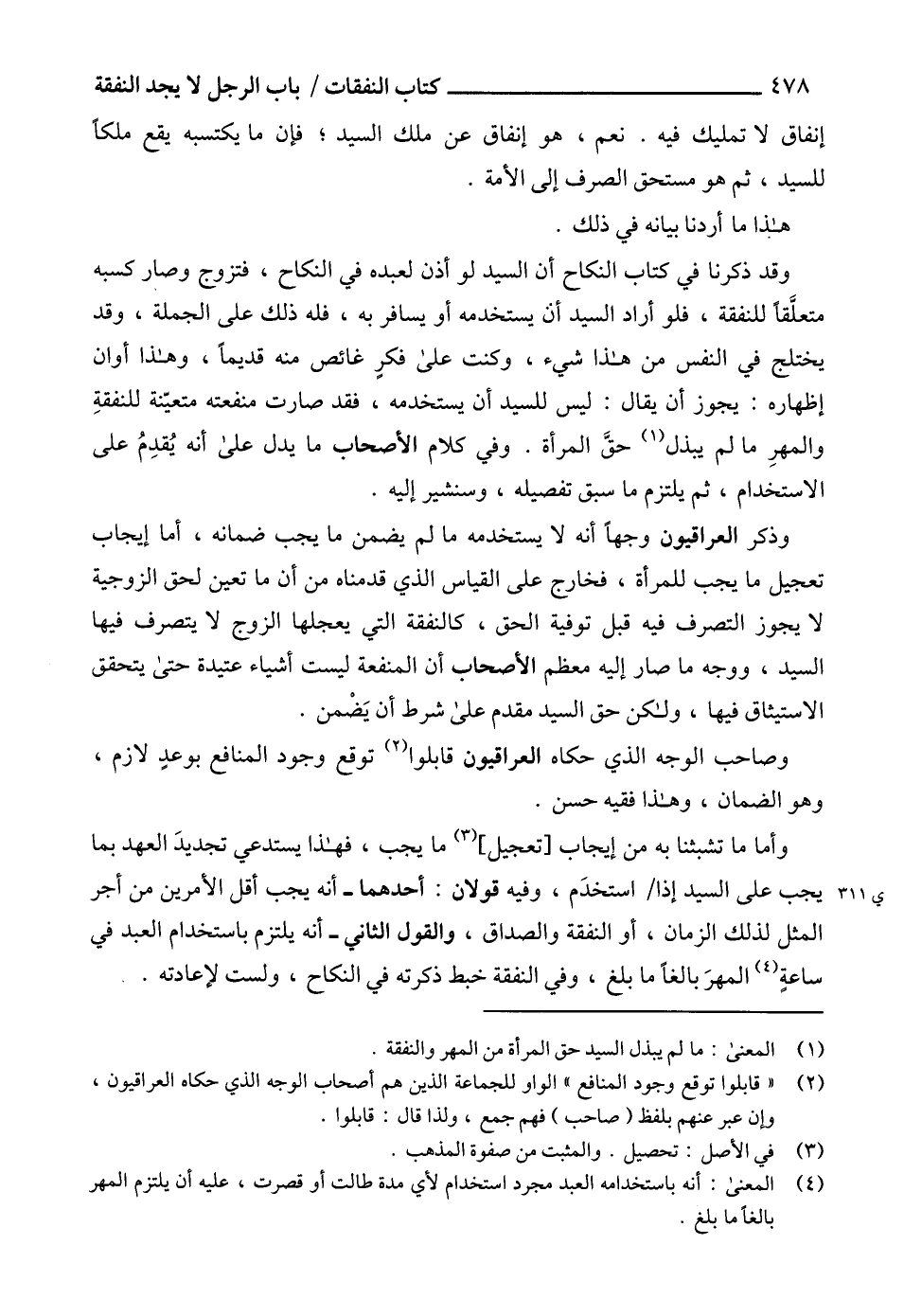 (4) المعنى: أنه باستخدامه العبد مجرد استخدام لأي مدة طالت أو قصرت، عليه أن يلتزم المهر بالغاً ما بلغ.