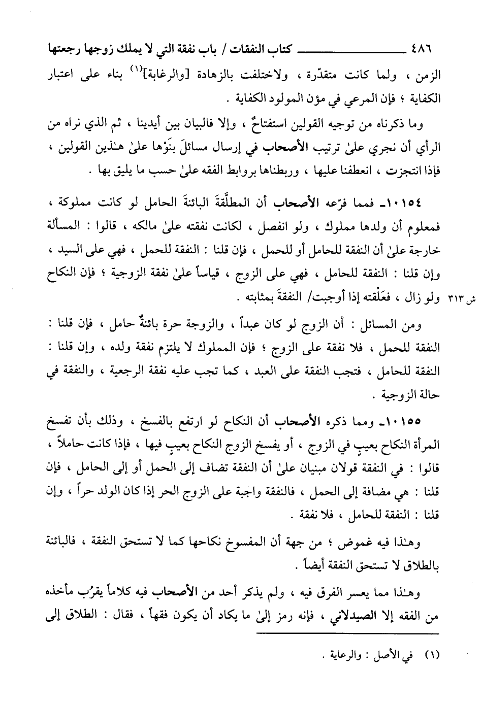 10154 - فمما فرّعه الأصحاب أن المطلَّقةَ البائنةَ الحامل لو كانت مملوكة، فمعلوم أن ولدها مملوك، ولو انفصل، لكانت نفقته على مالكه، قالوا: المسألة خارجة على أن النفقة للحامل أو للحمل، فإن قلنا: النفقة للحمل، فهي على السيد، وإن قلنا: النفقة للحامل، فهي على الزوج، قياساً على نفقة الزوجية؛ فإن النكاح ولو زال، فعَلْقته إذا أوجبت النفقةَ بمثابته.