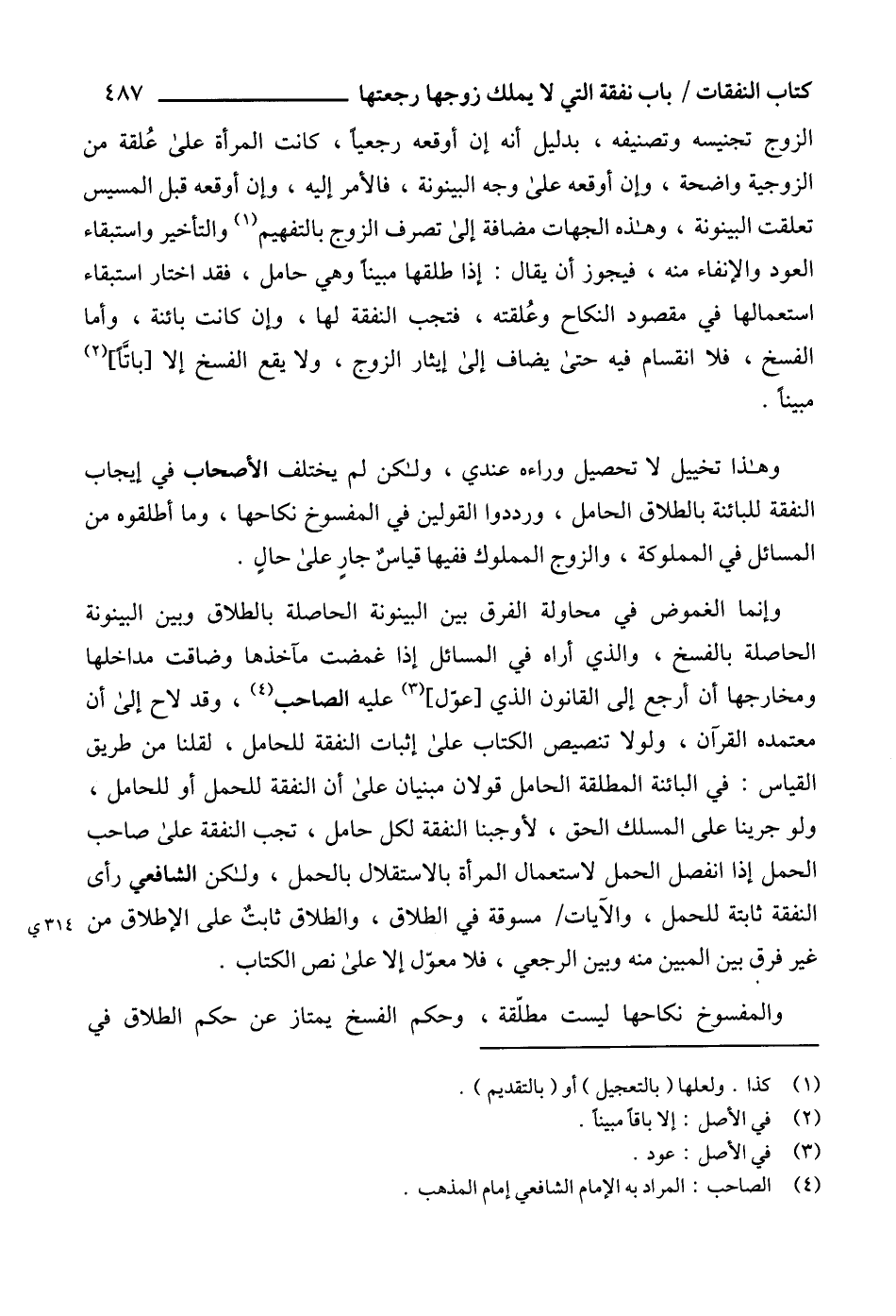 وهذا تخييل لا تحصيل وراءه عندي، ولكن لم يختلف الأصحاب في إيجاب النفقة للبائنة بالطلاق الحامل، ورددوا القولين في المفسوخ نكاحها، وما أطلقوه من المسائل في المملوكة، والزوج المملوك ففيها قياسٌ جارٍ على حالٍ.