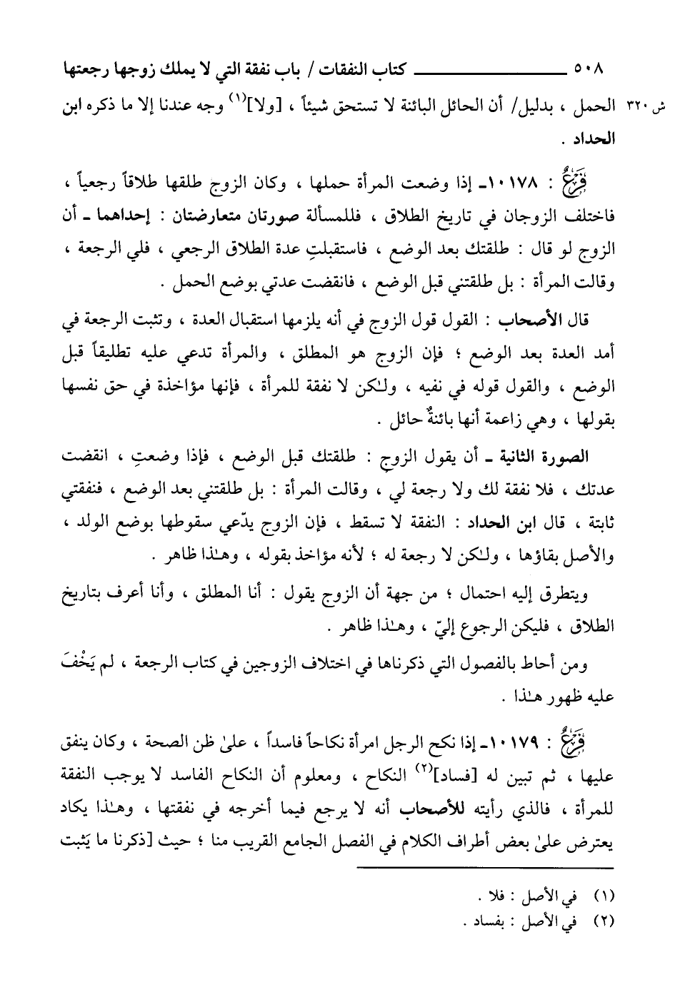 10178 - إذا وضعت المرأة حملها، وكان الزوج طلقها طلاقاً رجعياً، فاختلف الزوجان في تاريخ الطلاق، فللمسألة صورتان متعارضتان: إحداهما - أن الزوج لو قال: طلقتك بعد الوضع، فاستقبلتِ عدة الطلاق الرجعي، فلي الرجعة، وقالت المرأة: بل طلقتني قبل الوضع، فانقضت عدتي بوضع الحمل.