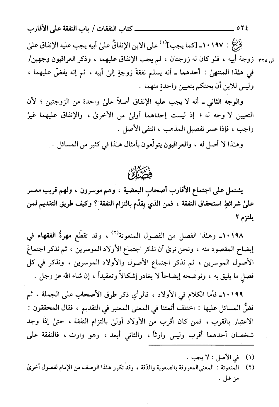 10198 - وهذا الفصل من الفصول المنعوتة (2)، وقد تقطّع مهرةُ الفقهاء في إيضاح المقصود منه، ونحن نرى أن نذكر اجتماع الأولاد الموسرين، ثم نذكر اجتماعَ الأصول الموسرين، ثم نذكر اجتماع الأصول والأولاد الموسرين، ونذكر في كل فصلٍ ما يليق به، ونوضحه إيضاحاً لا يغادر إشكالاً وتعقيداً، إن شاء الله عز وجل.