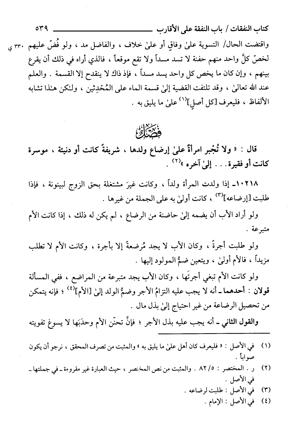 قال: " ولا تُجْبر امرأةٌ على إرضاع ولدها، شريفةً كانت أو دنيئة، موسرة