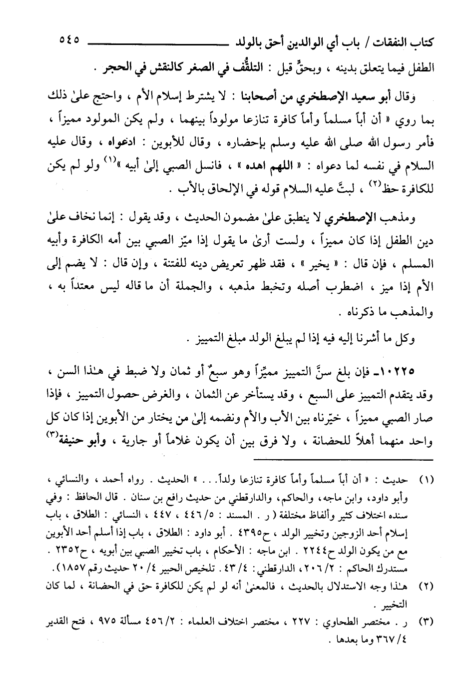 (3) ر. مختصر الطحاوي: 227، مختصر اختلاف العلماء: 2/ 456 مسألة 975، فتح القدير 4/ 367 وما بعدها.