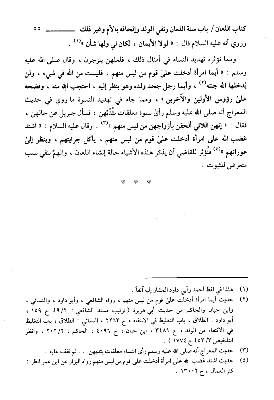 (4) حديث اشتد غضب الله على امرأة أدخلت على قوم من ليس منهم رواه البزار عن ابن عمر انظر: كنز العمال، ح 13002.