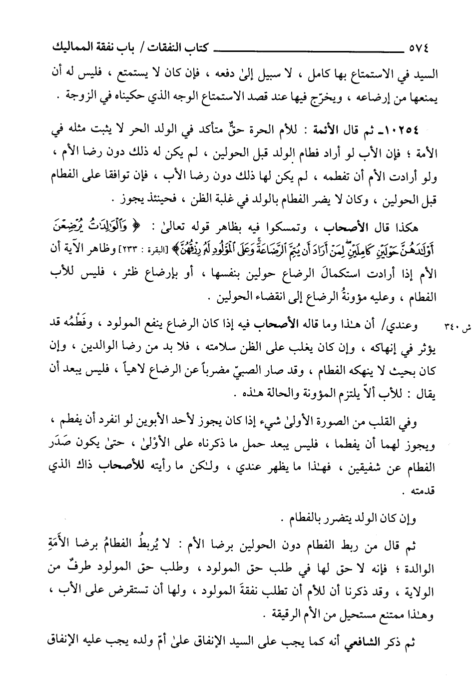 10254 - ثم قال الأئمة: للأم الحرة حقٌّ متأكد في الولد الحر لا يثبت مثله في الأمة؛ فإن الأب لو أراد فطام الولد قبل الحولين، لم يكن له ذلك دون رضا الأم، ولو أرادت الأم أن تفطمه، لم يكن لها ذلك دون رضا الأب، فإن توافقا على الفطام قبل الحولين، وكان لا يضر الفطام بالولد في غلبة الظن، فحينئذ يجوز.