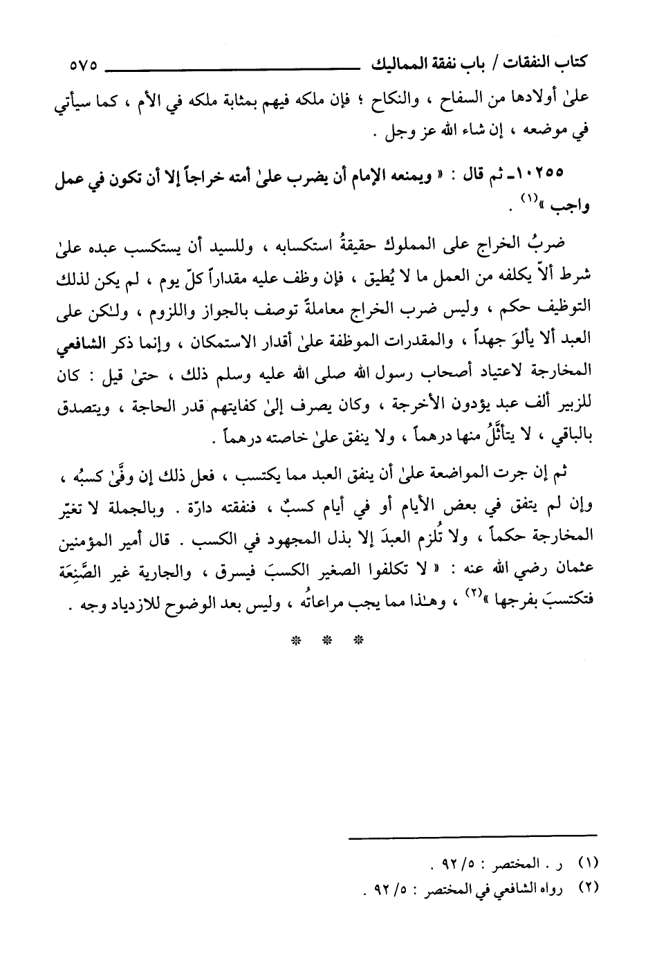 10255 - ثم قال: " ويمنعه الإمام أن يضرب على أمته خراجاً إلا أن تكون في عمل واجب " (1).
