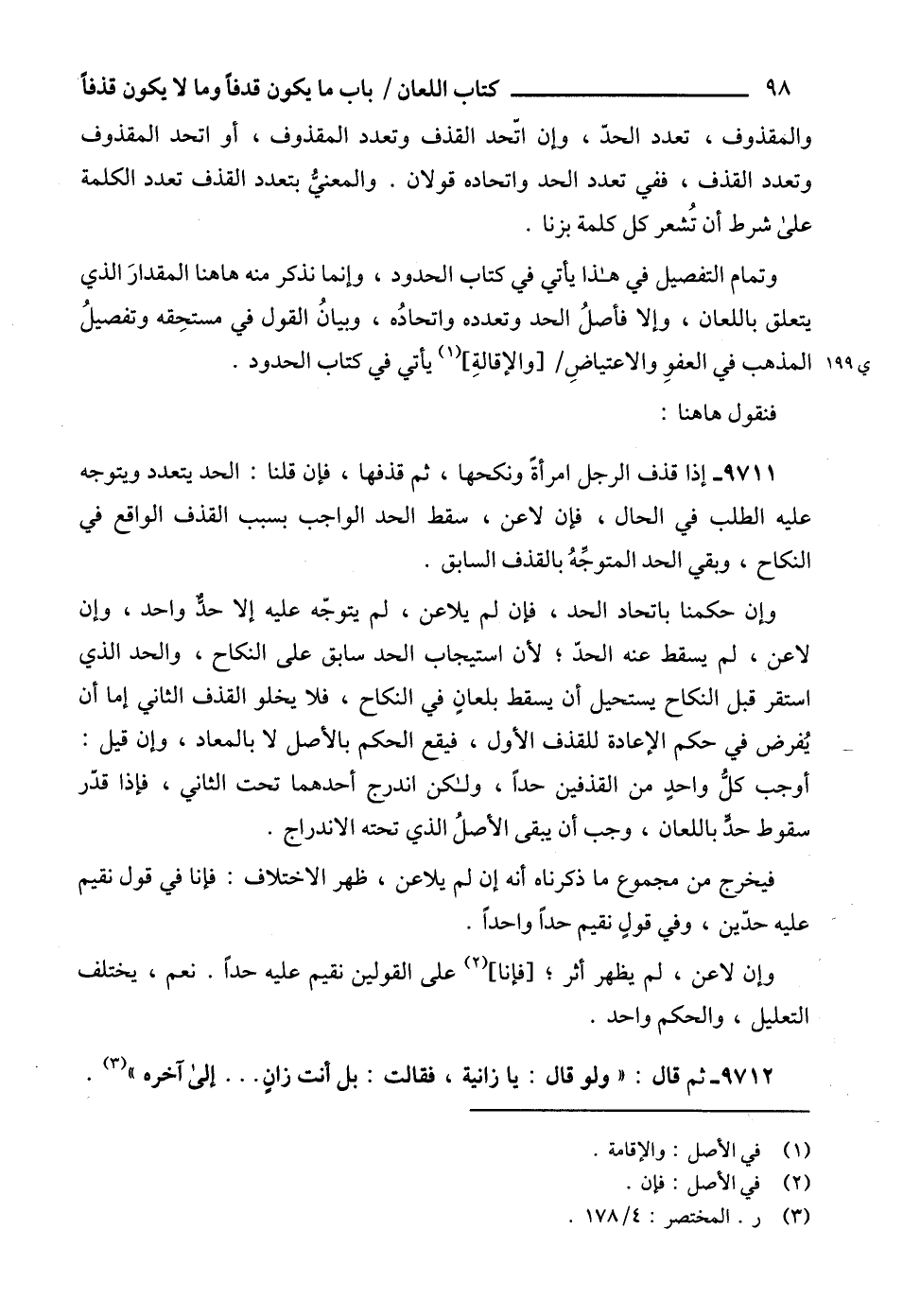 9712 - ثم قال: " ولو قال: يا زانية، فقالت: بل أنت زانٍ ... إلى آخره " (3).