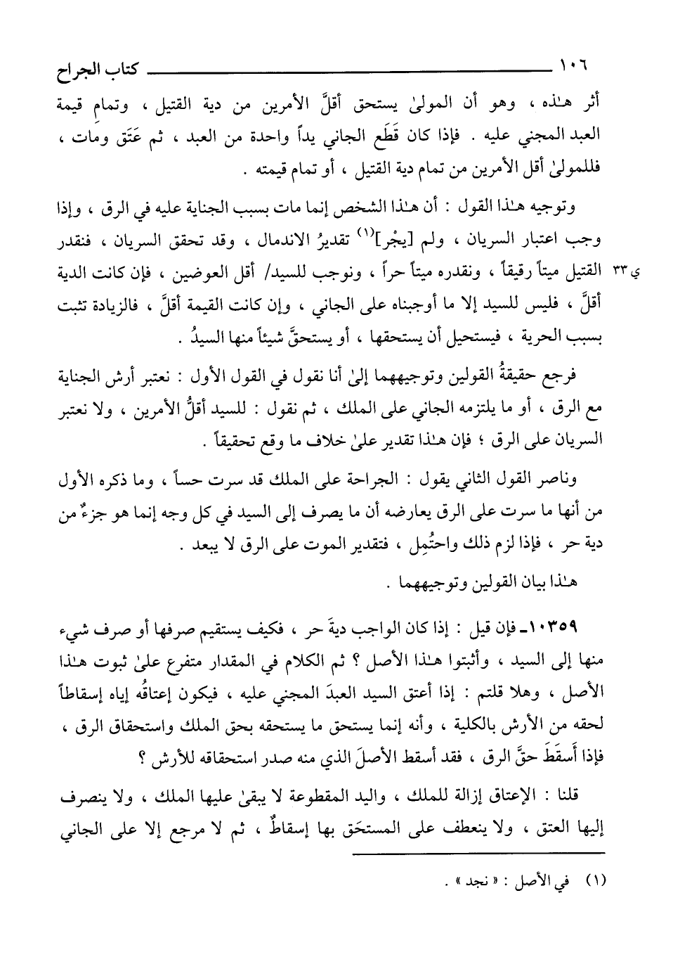 10359 - فإن قيل: إذا كان الواجب ديةَ حر، فكيف يستقيم صرفها أو صرف شيء منها إلى السيد، وأثبتوا هذا الأصل؟ ثم الكلام في المقدار متفرع على ثبوت هذا الأصل، وهلا قلتم: إذا أعتق السيد العبدَ المجني عليه، فيكون إعتاقُه إياه إسقاطاً لحقه من الأرش بالكلية، وأنه إنما يستحق ما يستحقه بحق الملك واستحقاق الرق، فإذا أَسقَطَ حقَّ الرق، فقد أسقط الأصلَ الذي منه صدر استحقاقه للأرش؟