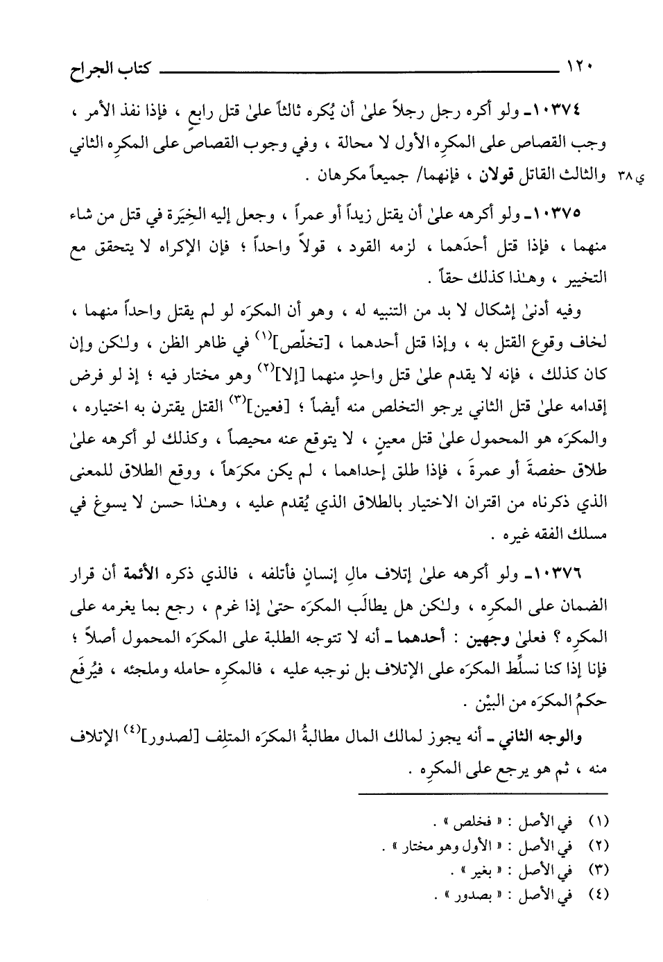 10375 - ولو أكرهه على أن يقتل زيداً أو عمراً، وجعل إليه الخِيَرة في قتل من شاء منهما، فإذا قتل أحدَهما، لزمه القود، قولاً واحداً؛ فإن الإكراه لا يتحقق مع التخيير، وهذا كذلك حقاً.