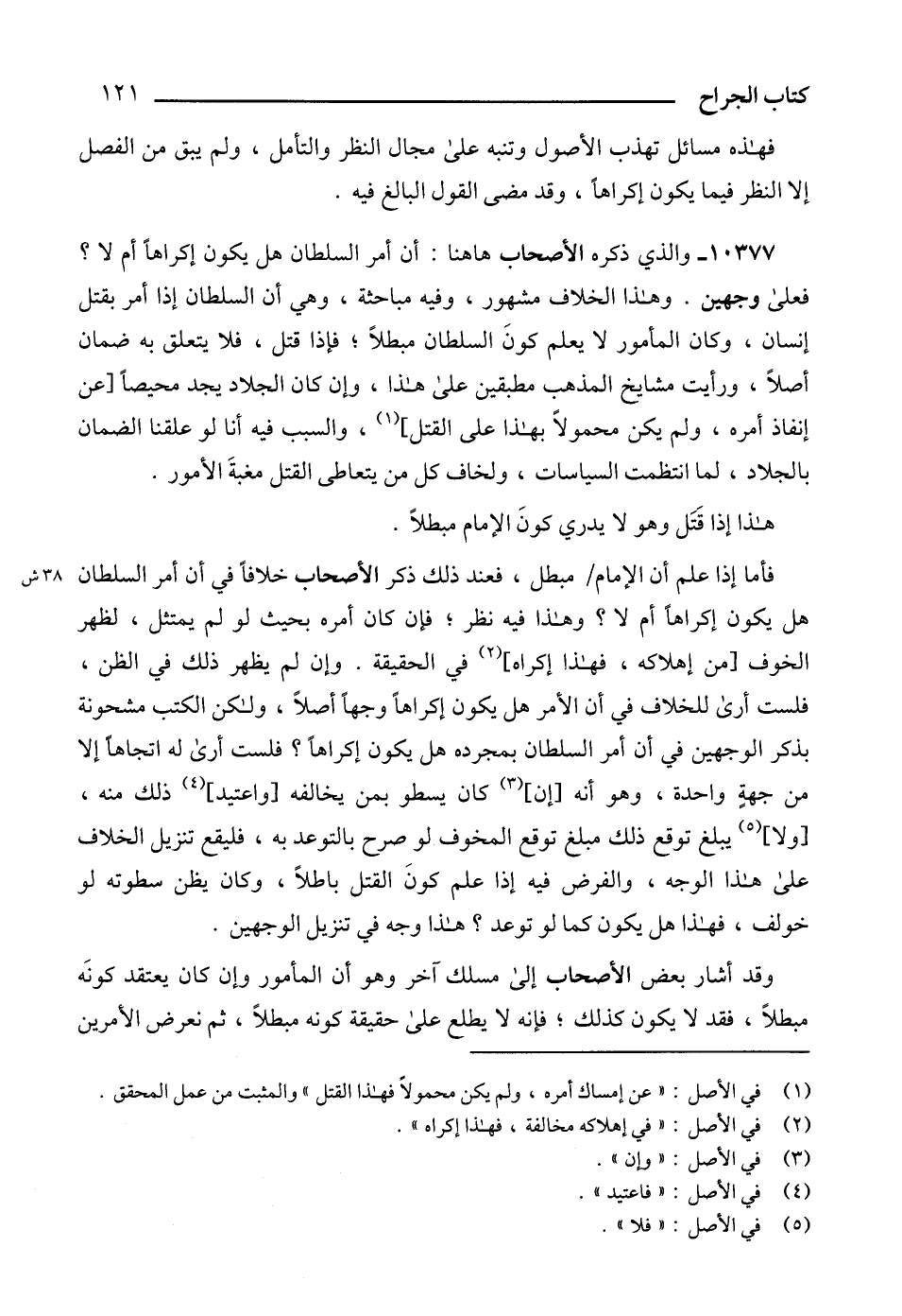 فأما إذا علم أن الإمام مبطل، فعند ذلك ذكر الأصحاب خلافاً في أن أمر السلطان هل يكون إكراهاً أم لا؟ وهذا فيه نظر؛ فإن كان أمره بحيث لو لم يمتثل، لظهر الخوف [من إهلاكه، فهذا إكراه] (2) في الحقيقة. وإن لم يظهر ذلك في الظن، فلست أرى للخلاف في أن الأمر هل يكون إكراهاً وجهاً أصلاً، ولكن الكتب مشحونة بذكر الوجهين في أن أمر السلطان بمجرده هل يكون إكراهاً؟ فلست أرى له اتجاهاً إلا من جهةٍ واحدة، وهو أنه [إن] (3) كان يسطو بمن يخالفه [واعتيد] (4) ذلك منه، [ولا] (5) يبلغ توقع ذلك مبلغ توقع المخوف لو صرح بالتوعد به، فليقع تنزيل الخلاف على هذا الوجه، والفرض فيه إذا علم كونَ القتل باطلاً، وكان يظن سطوته لو خولف، فهذا هل يكون كما لو توعد؟ هذا وجه في تنزيل الوجهين.