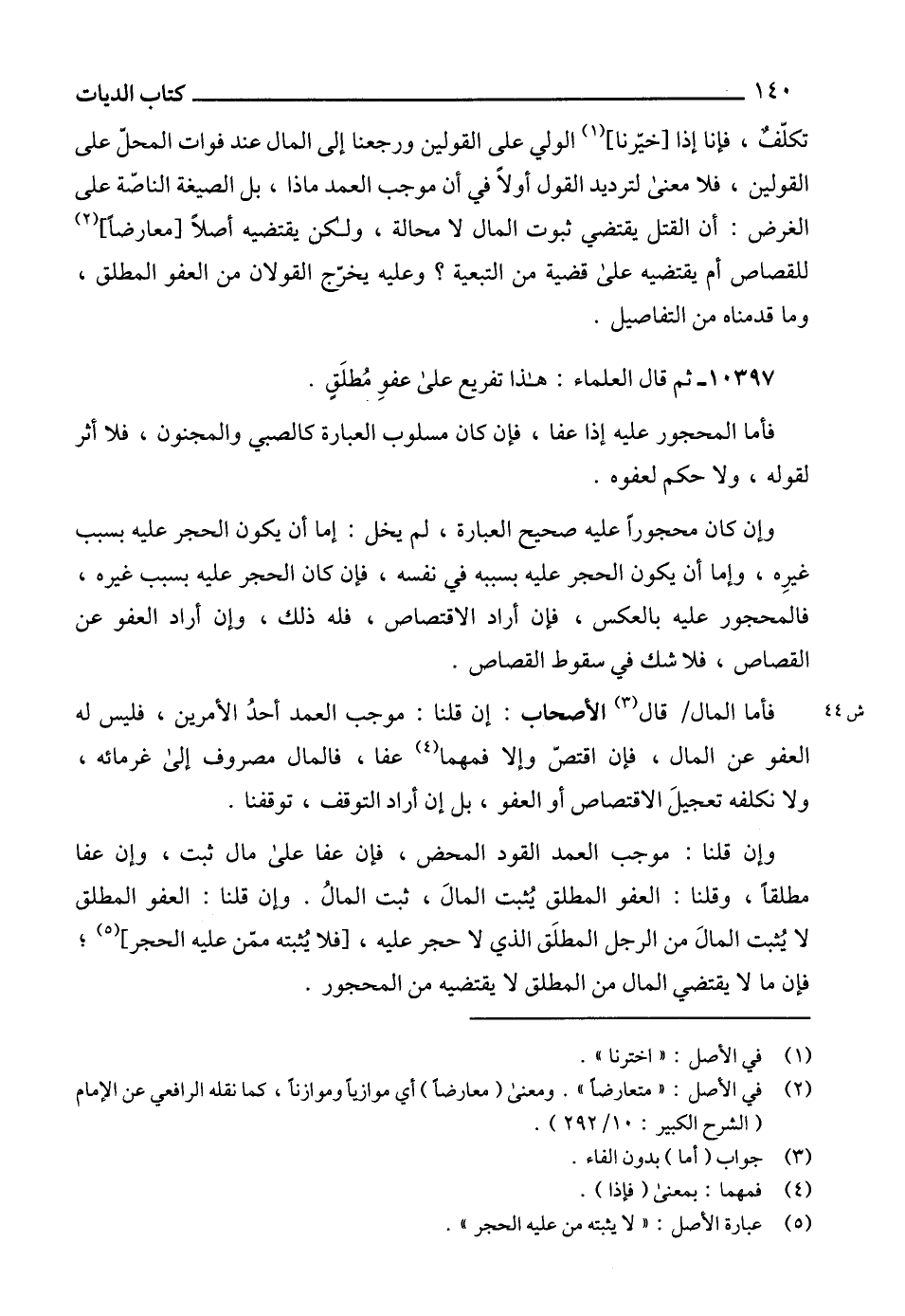 10397 - ثم قال العلماء: هذا تفريع على عفوِ مُطلَقٍ.