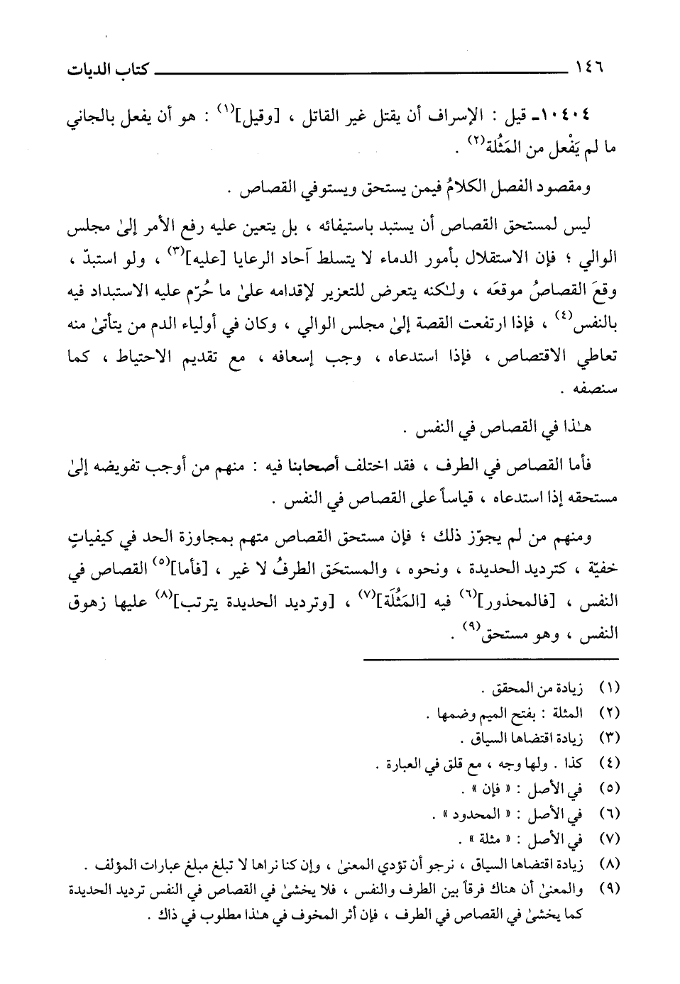 (9) والمعنى أن هناك فرقاً بين الطرف والنفس، فلا يخشى في القصاص في النفس ترديد الحديدة كما يخشى في القصاص في الطرف، فإن أثر المخوف في هذا مطلوب في ذاك.