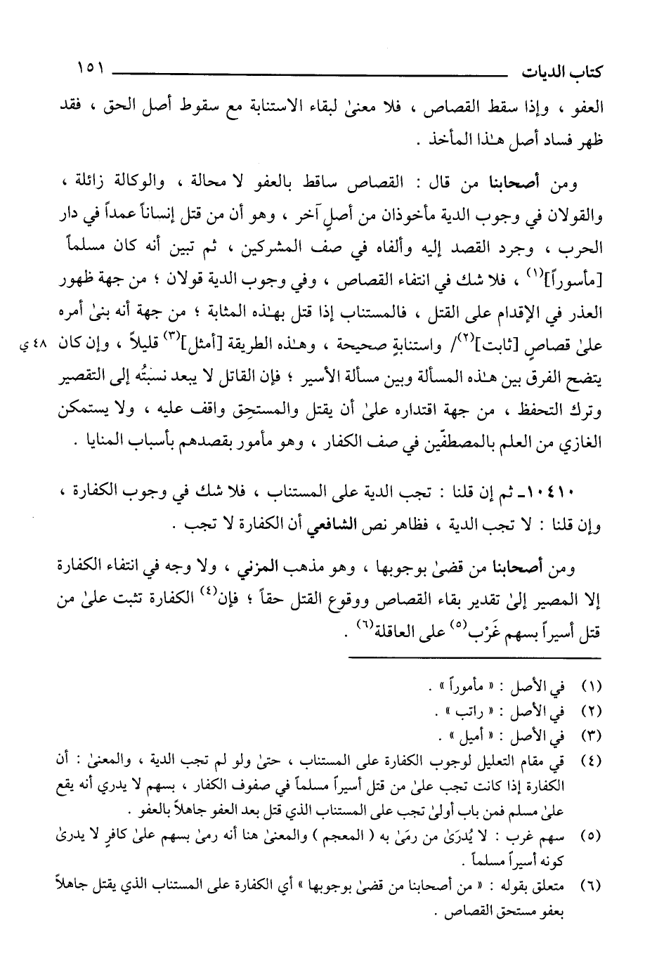 (6) متعلق بقوله: "من أصحابنا من قضى بوجوبها" أي الكفارة على المستناب الذي يقتل جاهلاً بعفو مستحق القصاص.