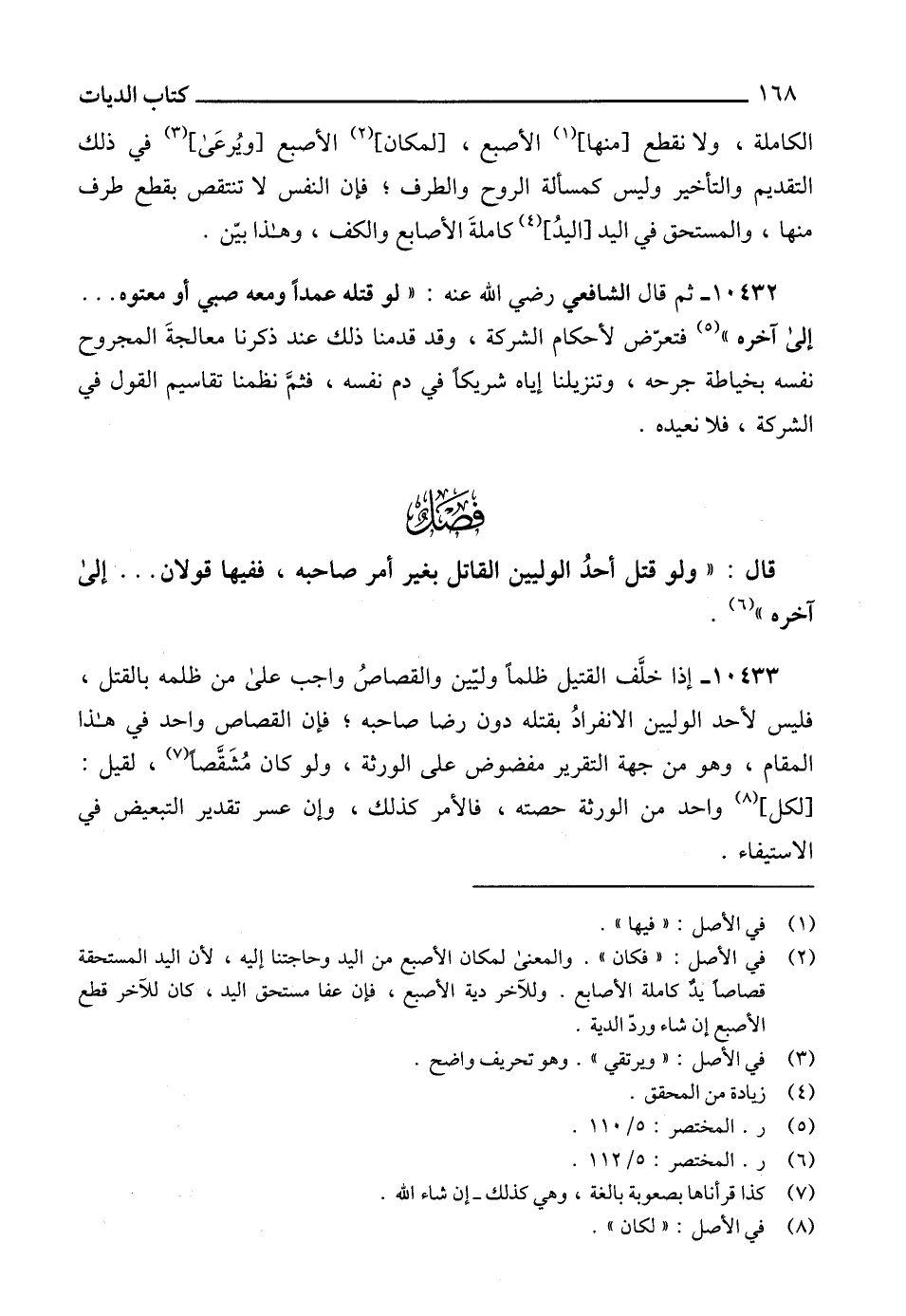 10432 - ثم قال الشافعي رضي الله عنه: "لو قتله عمداً ومعه صبي أو معتوه ... إلى آخره" (5) فتعرّض لأحكام الشركة، وقد قدمنا ذلك عند ذكرنا معالجةَ المجروح نفسه بخياطة جرحه، وتنزيلنا إياه شريكاً في دم نفسه، فثمَّ نظمنا تقاسيم القول في الشركة، فلا نعيده.