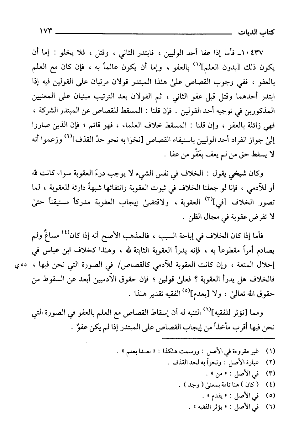 وكان شيخي يقول: الخلاف في نفس الشيء لا يوجب درءَ العقوبة سواء كانت لله أو للآدمي، فإنا لو جعلنا الخلاف في ثبوت العقوبة وانتفائها شبهةً دارئة للعقوبة، لما تصور الخلاف [في] (3) العقوبة، ولاقتضى إيجاب العقوبة مدركاً مستيقناً حتى لا تفرض عقوبة في مجال الظن.