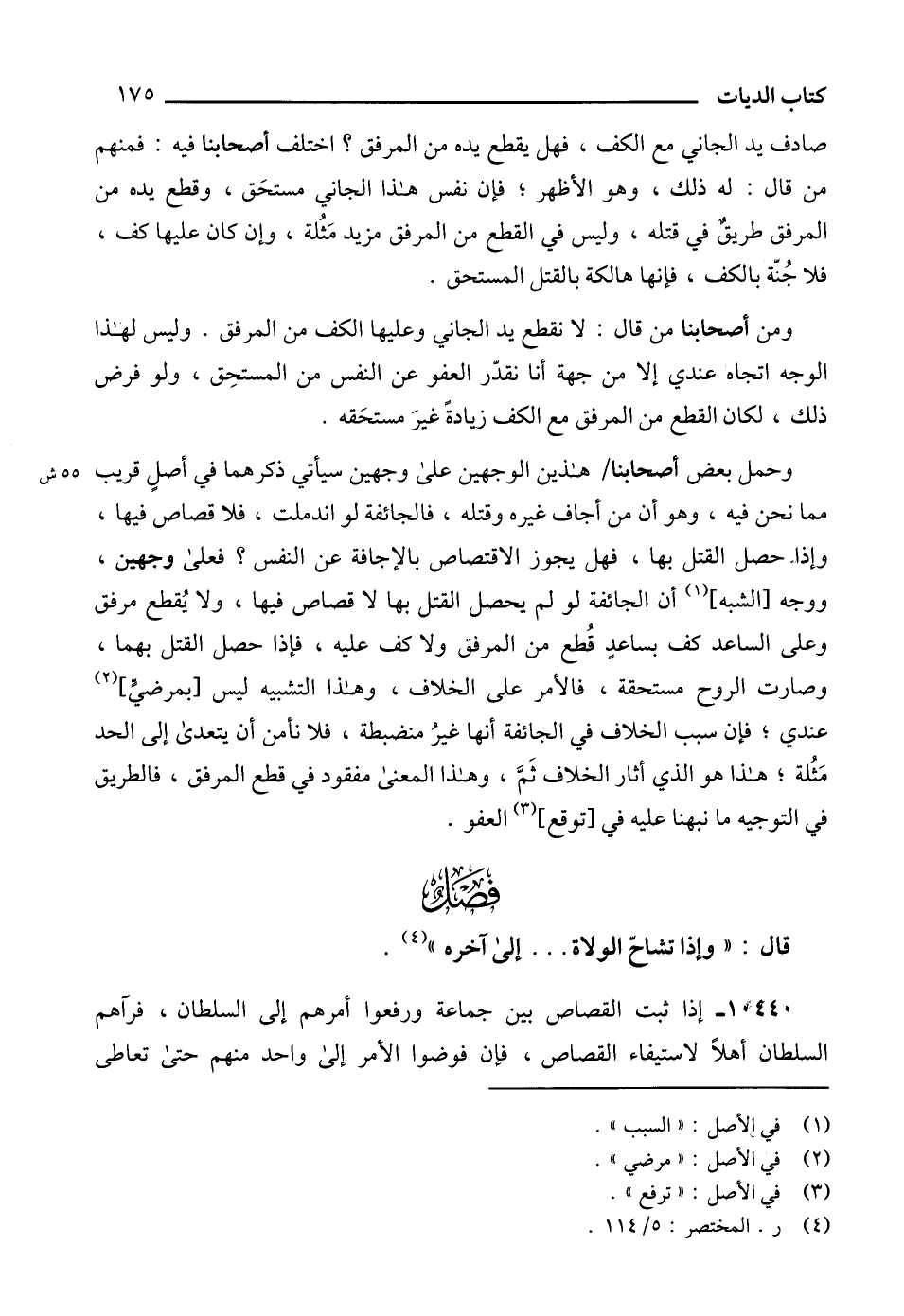 10440 - إذا ثبت القصاص بين جماعة ورفعوا أمرهم إلى السلطان، فرآهم السلطان أهلاً لاستيفاء القصاص، فإن فوضوا الأمر إلى واحد منهم حتى تعاطى