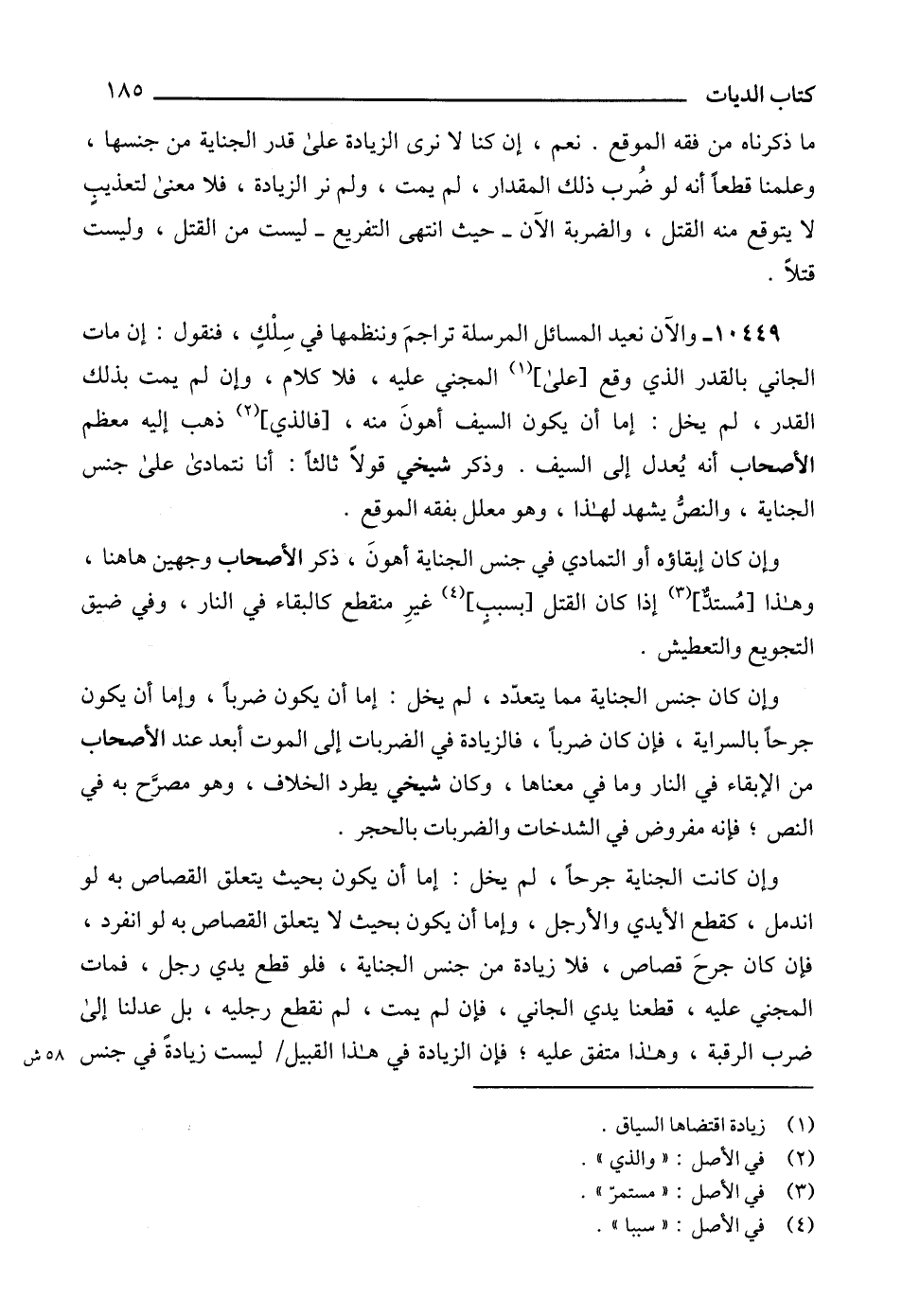 10449 - والآن نعيد المسائل المرسلة تراجمَ وننظمها في سِلْكٍ، فنقول: إن مات الجاني بالقدر الذي وقع [على] (1) المجني عليه، فلا كلام، وإن لم يمت بذلك القدر، لم يخل: إما أن يكون السيف أهونَ منه، [فالذي] (2) ذهب إليه معظم الأصحاب أنه يُعدل إلى السيف. وذكر شيخي قولاً ثالثاً: أنا نتمادى على جنس الجناية، والنصُّ يشهد لهذا، وهو معلل بفقه الموقع.