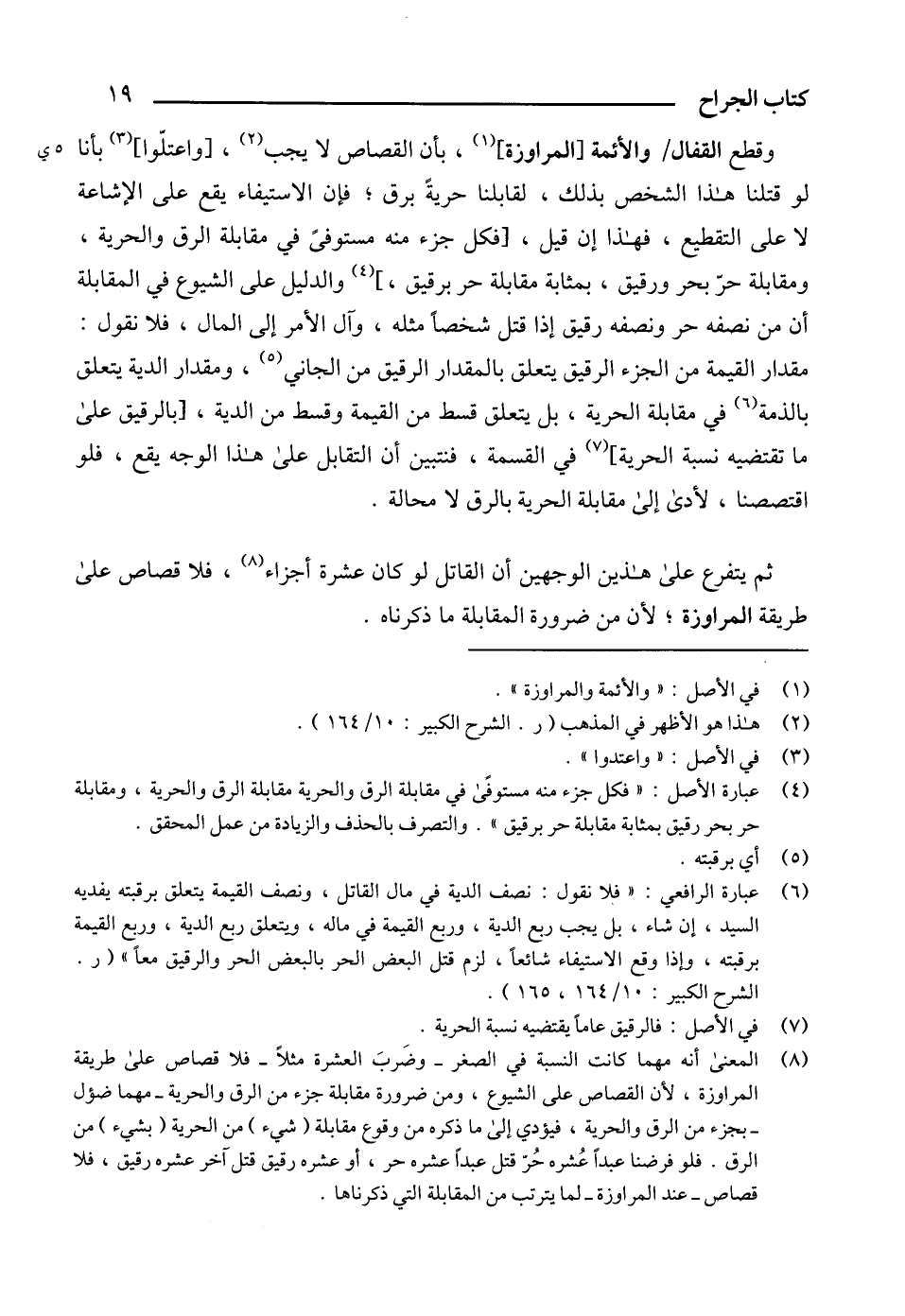 (4) عبارة الأصل: "فكل جزء منه مستوفًى في مقابلة الرق والحرية مقابلة الرق والحرية، ومقابلة حر بحر رقيق بمثابة مقابلة حر برقيق". والتصرف بالحذف والزيادة من عمل المحقق.