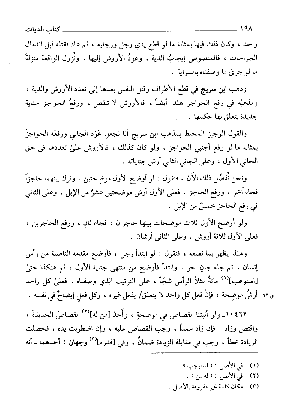 وذهب ابن سريج في قطع الأطراف وقتل النفس بعدها إلى تعدد الأروش والدية، ومذهبُه في رفع الحواجز هذا أيضاًً، فالأروش لا تنقص، ورفعُ الحواجز جناية جديدة يتعلق بها حكمها.
