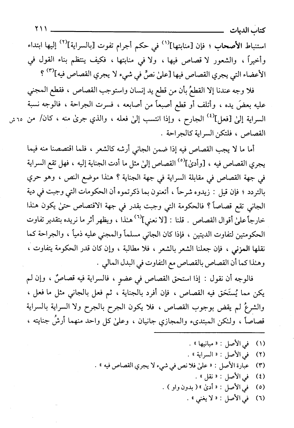 (3) عبارة الأصل: "على فلا نص في شيء لا يجري القصاص فيه".