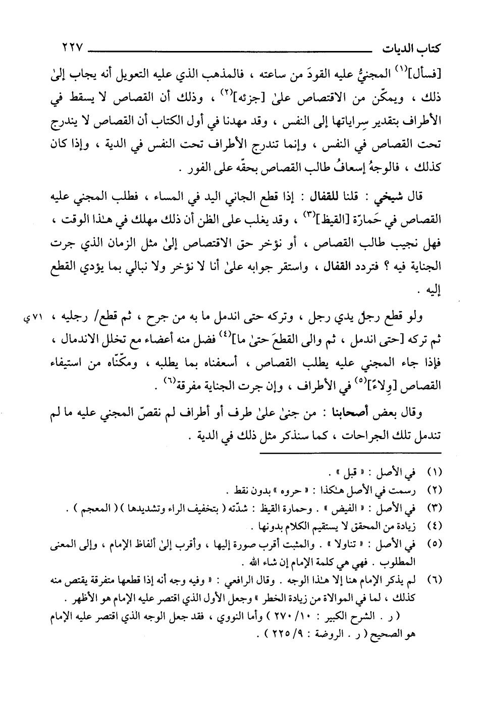 (6) لم يذكر الإمام هنا إلا هذا الوجه. وقال الرافعي: "وفيه وجه أنه إذا قطعها متفرقة يقتص منه