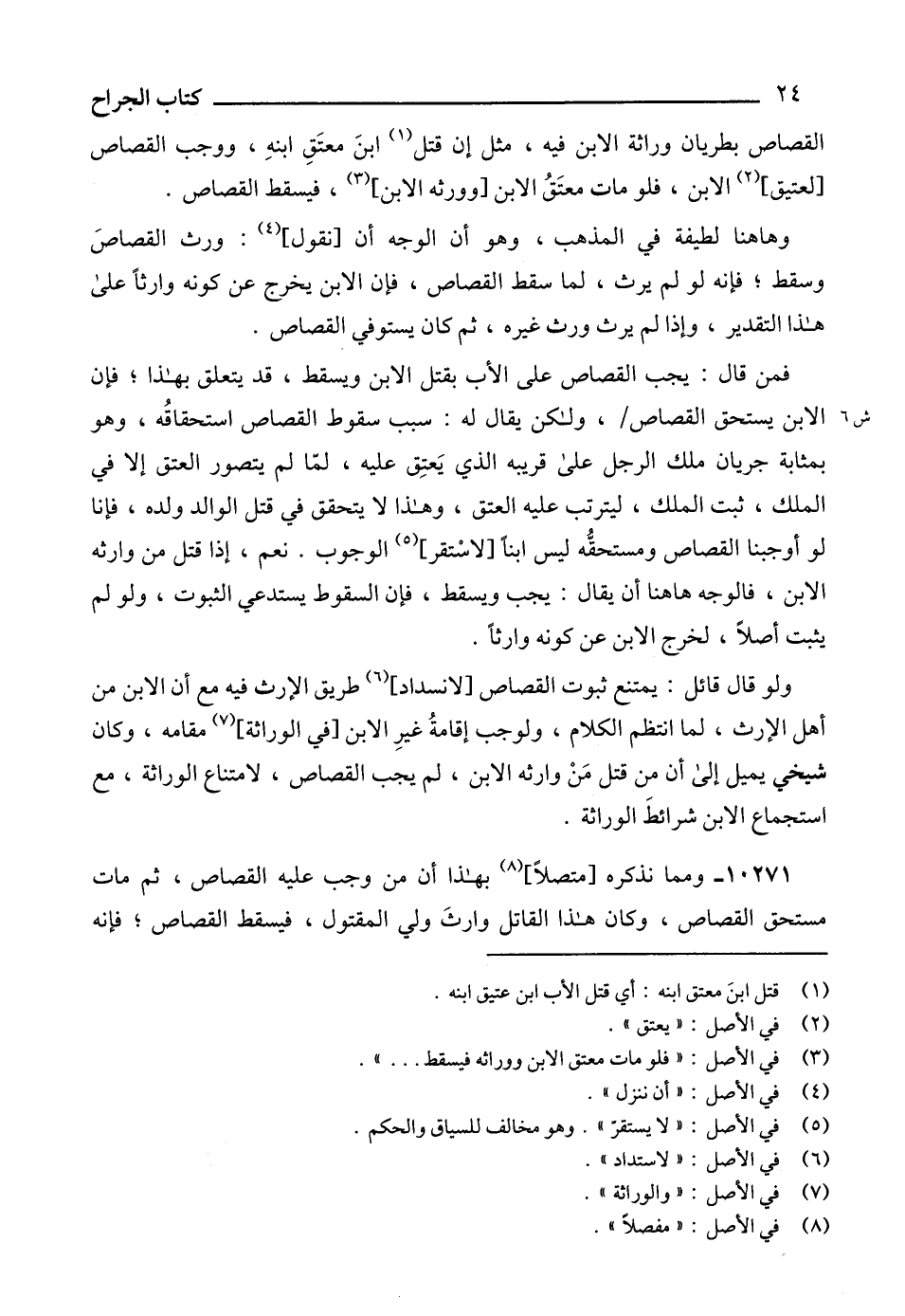 10271 - ومما نذكره [متصلاً] (8) بهذا أن من وجب عليه القصاص، ثم مات مستحق القصاص، وكان هذا القاتل وارثَ ولي المقتول، فيسقط القصاص؛ فإنه