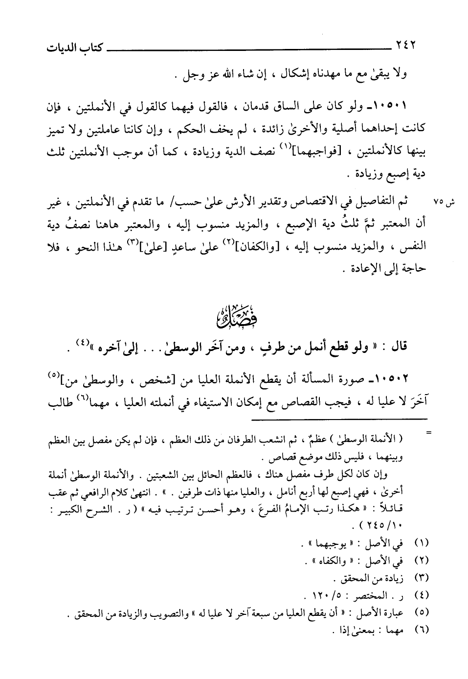 وإن كان لكل طرف مفصل هناك، فالعظم الحائل بين الشعبتين. والأنملة الوسطى أنملة أخرى، فهي إصبع لها أربع أنامل، والعليا منها ذات طرفين.". انتهى كلام الرافعي ثم عقب قائلاً: "هكذا رتب الإمامُ الفرعَ، وهو أحسن ترتيب فيه" (ر. الشرح الكبير: 10/ 245).