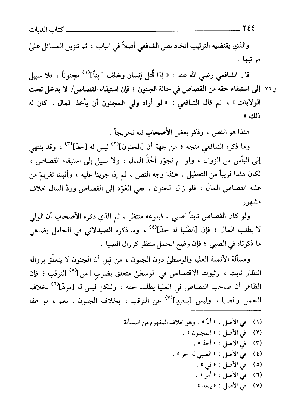 ومسألة الأنملة العليا والوسطى دون الجنون، من قِبل أن الجنون لا يتعلّق بزواله انتظار ثابت، وثبوت الاقتصاص في الوسطى متعلق بضربٍ [من] (5) الترقب؛ فإن الظاهر أن صاحب القصاص في العليا يطلب حقه، ولكن ليس له [مردّ] (6) بخلاف الحمل والصبا، وليس [ببعيدٍ] (7) عن الترقب، بخلاف الجنون. نعم، لو عفا