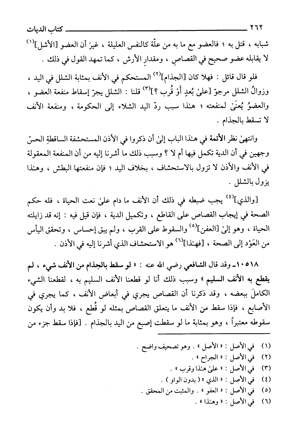 فلو قال قائل: فهلا كان [الجذام] (2) المستحكم في الأنف بمثابة الشلل في اليد، وزوالُ الشلل مرجوّ [على بُعدٍ أَوْ قُرب؟] (3) قلنا: الشلل يجرّ إسقاط منفعة العضو، والعضوُ يُعنَى لمنفعته؛ هذا سبب ردّ اليد الشلاء إلى الحكومة، ومنفعة الأنف لا تسقط بالجذام.