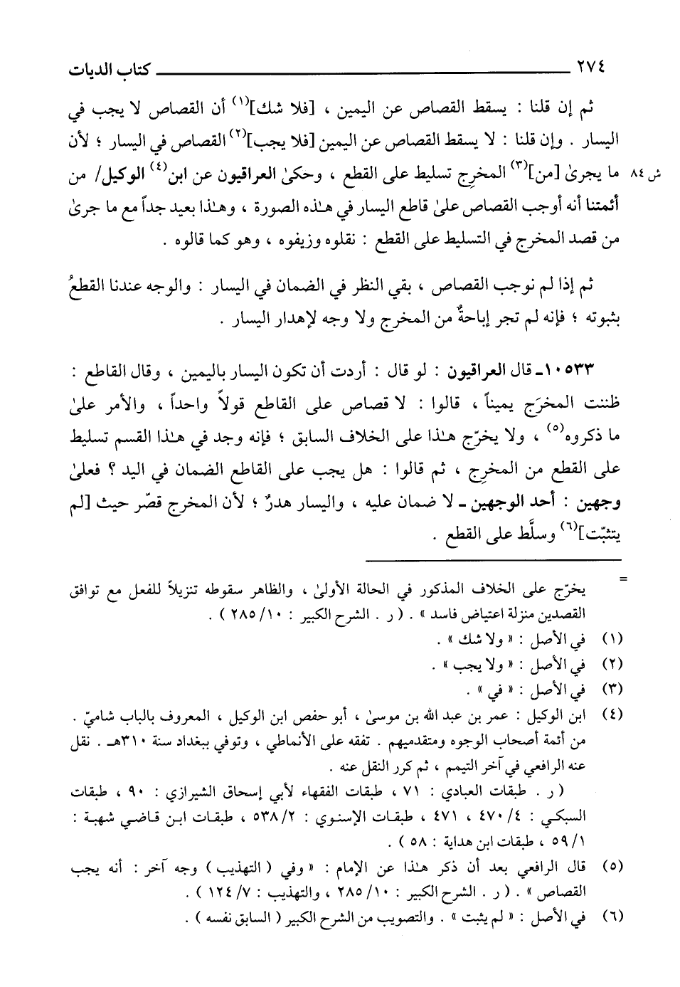 (5) قال الرافعي بعد أن ذكر هذا عن الإمام: "وفي (التهذيب) وجه آخر: أنه يجب القصاص". (ر. الشرح الكبير: 10/ 285، والتهذيب: 7/ 124).