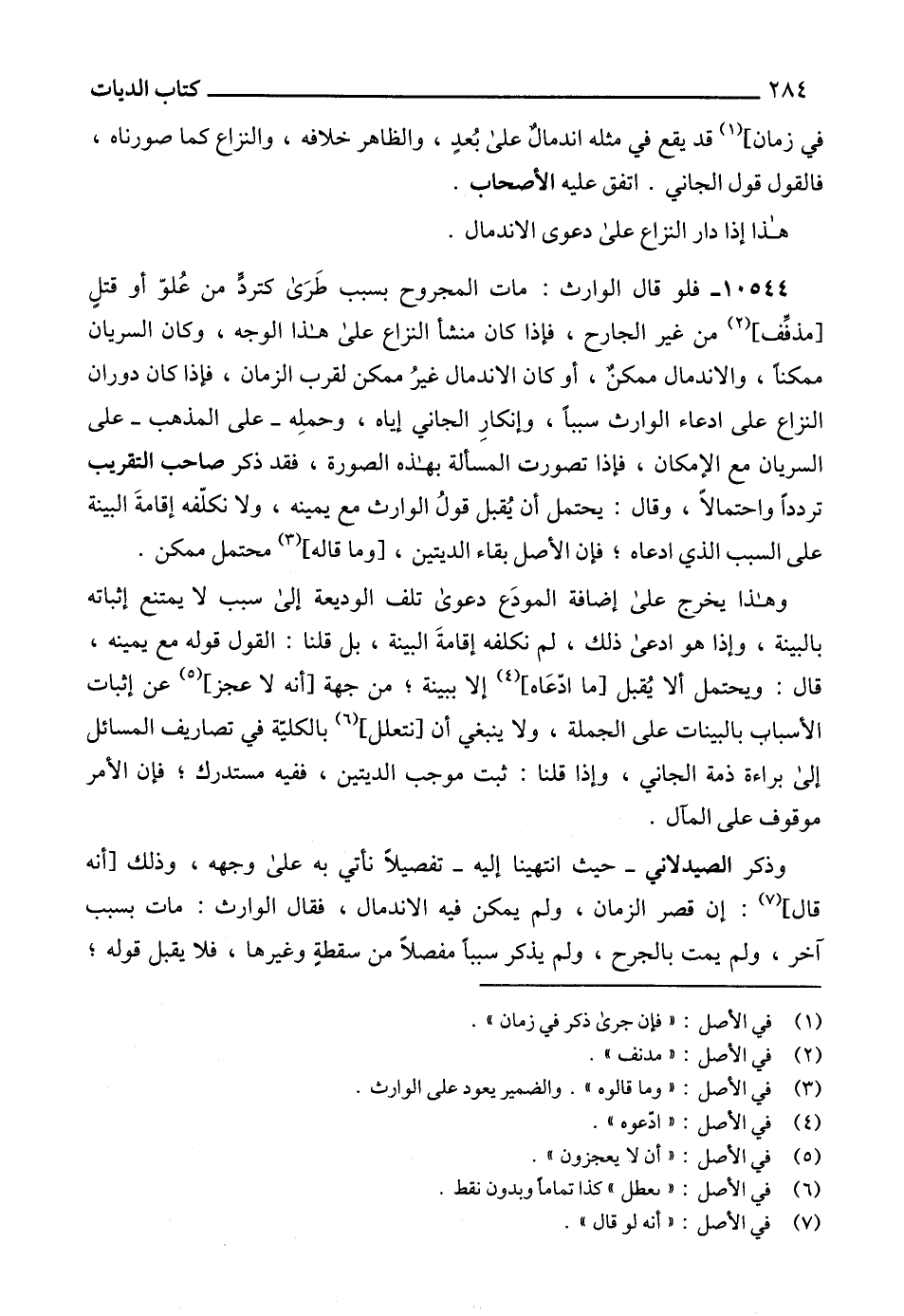10544 - فلو قال الوارث: مات المجروح بسبب طَرَى كتردٍّ من عُلوّ أو قتلٍ [مذفِّف] (2) من غير الجارح، فإذا كان منشأ النزاع على هذا الوجه، وكان السريان ممكناً، والاندمال ممكنٌ، أو كان الاندمال غيرُ ممكن لقرب الزمان، فإذا كان دوران النزاع على ادعاء الوارث سبباً، وإنكارِ الجاني إياه، وحملِه -على المذهب- على السريان مع الإمكان، فإذا تصورت المسألة بهذه الصورة، فقد ذكر صاحب التقريب تردداً واحتمالاً، وقال: يحتمل أن يُقبل قولُ الوارث مع يمينه، ولا نكلّفه إقامةَ البينة على السبب الذي ادعاه؛ فإن الأصل بقاء الديتين، [وما قاله] (3) محتمل ممكن.