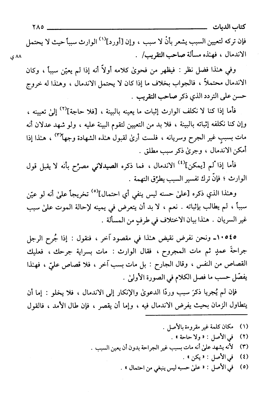 وهذا الذي ذكره [على حسنه ليس ينفي أي احتمال] (5) تخريجاً على أنه لو عيّن سبباً، لم يطالب بإثباته. نعم، لا بد أن يتعرض في يمينه لإحالة الموت على سبب غير السريان. هذا بيان الاختلاف في طرفٍ من المسألة.