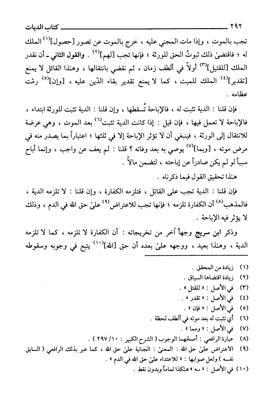 (9) الاعتراض على حق الله: المعنى: الجناية على حق الله، كما عبر بذلك الرافعي (السابق نفسه) ولعل صوابها: "للاعتداء على حق الله في الدم".