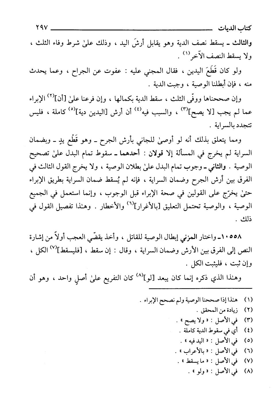 10558 - واختار المزني إبطال الوصية للقاتل، وأخذ يقضّي العجب أولاً من إشارة النص إلى الفرق بين الأرش وضمان السراية، وقال: إن سقط، [فليسقط] (7) الكل، وإن ثبت، فليثبت الكل.