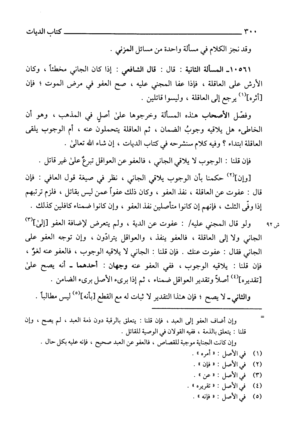 وقد نجز الكلام في مسألة واحدة من مسائل المزني.