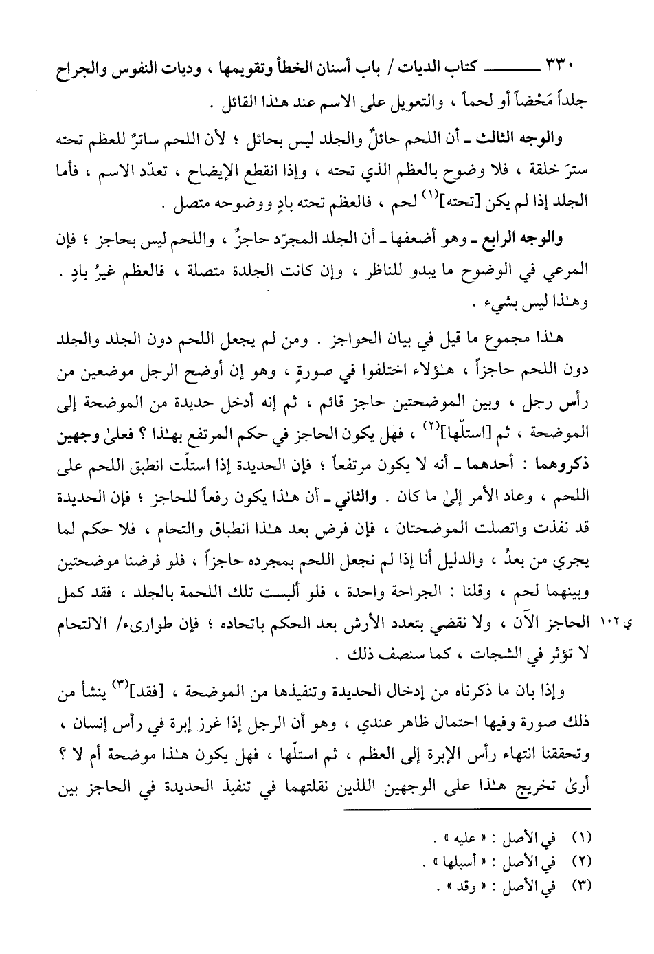والوجه الرابع -وهو أضعفها- أن الجلد المجرّد حاجزٌ، واللحم ليس بحاجز؛ فإن المرعي في الوضوح ما يبدو للناظر، وإن كانت الجلدة متصلة، فالعظم غيرُ بادٍ.