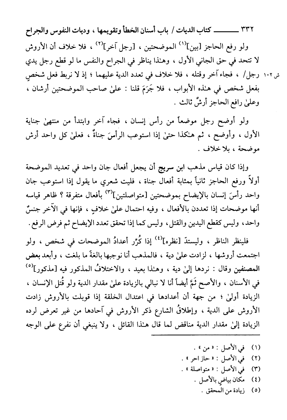 فلينظر الناظر، وليستدّ [نظره] (4) إذا كُرِّر أعدادُ الموضحات في شخص، ولو اجتمعت أروشها، لزادت على دية، فالمذهب أنا نوجبها بالغةً ما بلغت، وأبعد بعض المصنفين وقال: نردها إلى دية، وهذا بعيد، والاختلافُ المذكور فيه [مذكور] (5) في الأسنان، والأصح ثَمَّ أيضاًً أنا لا نبالي بالزيادة على مقدار الدية ولو قُتل الإنسان، الزيادة أولى؛ من جهة أن أعدادها في اعتدال الخلقة إذا قوبلت بالأروش زادت الأروش على الدية، وإطلاقُ الشارع ذكر الأروش في آحادها من غير تعرض لرده الزيادة إلى مقدار الدية مناقض لما قال هذا القائل، ولا ينبغي أن نفرع على الوجه