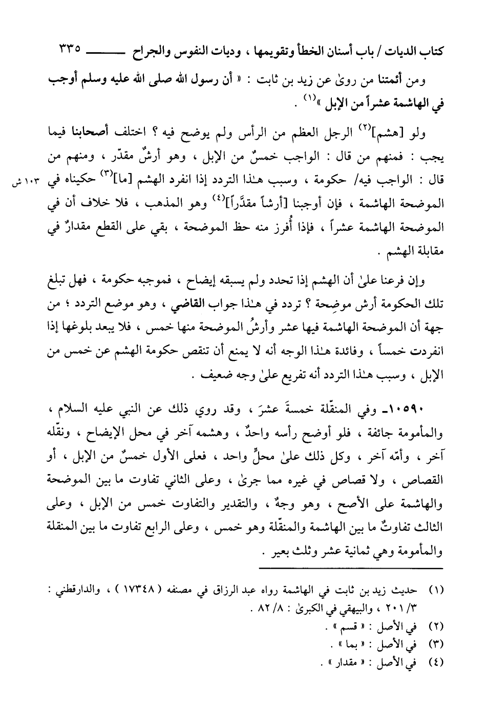(1) حديث زيد بن ثابت في الهاشمة رواه عبد الرزاق في مصنفه (17348)، والدارقطني: 3/ 201، والبيهقي في الكبرى: 8/ 82.