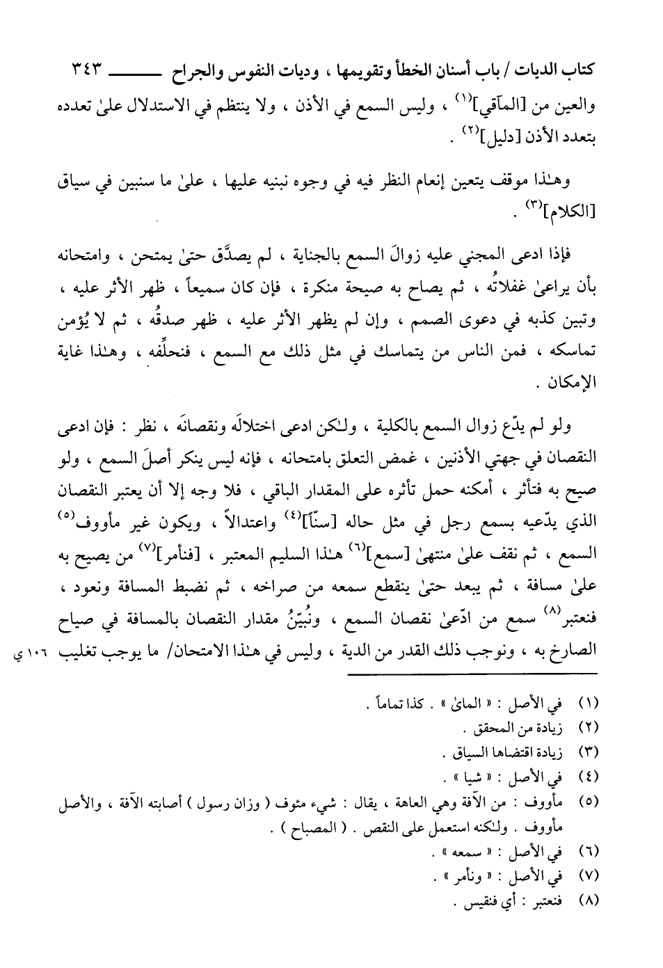 والعين من [المآقي] (1)، وليس السمع في الأذن، ولا ينتظم في الاستدلال على تعدده بتعدد الأذن [دليل] (2).