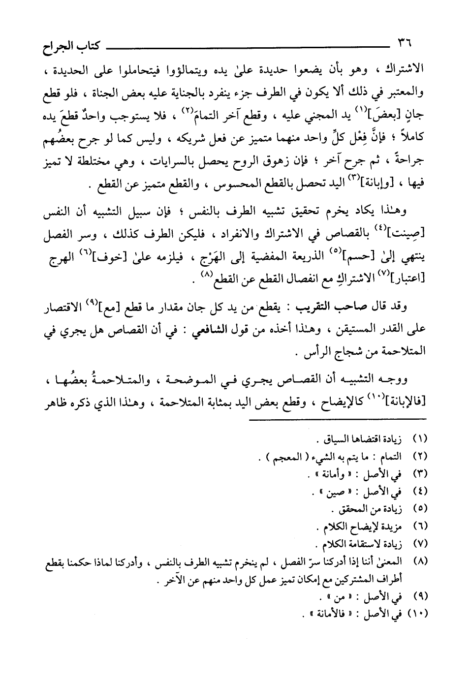 وهذا يكاد يخرم تحقيق تشبيه الطرف بالنفس؛ فإن سبيل التشبيه أن النفس [صِينت] (4) بالقصاص في الاشتراك والانفراد، فليكن الطرف كذلك، وسر الفصل ينتهي إلى [حسم] (5) الذريعة المفضية إلى الهَرْج، فيلزمه على [خوف] (6) الهرج [اعتبار] (7) الاشتراكِ مع انفصال القطع عن القطع (8).