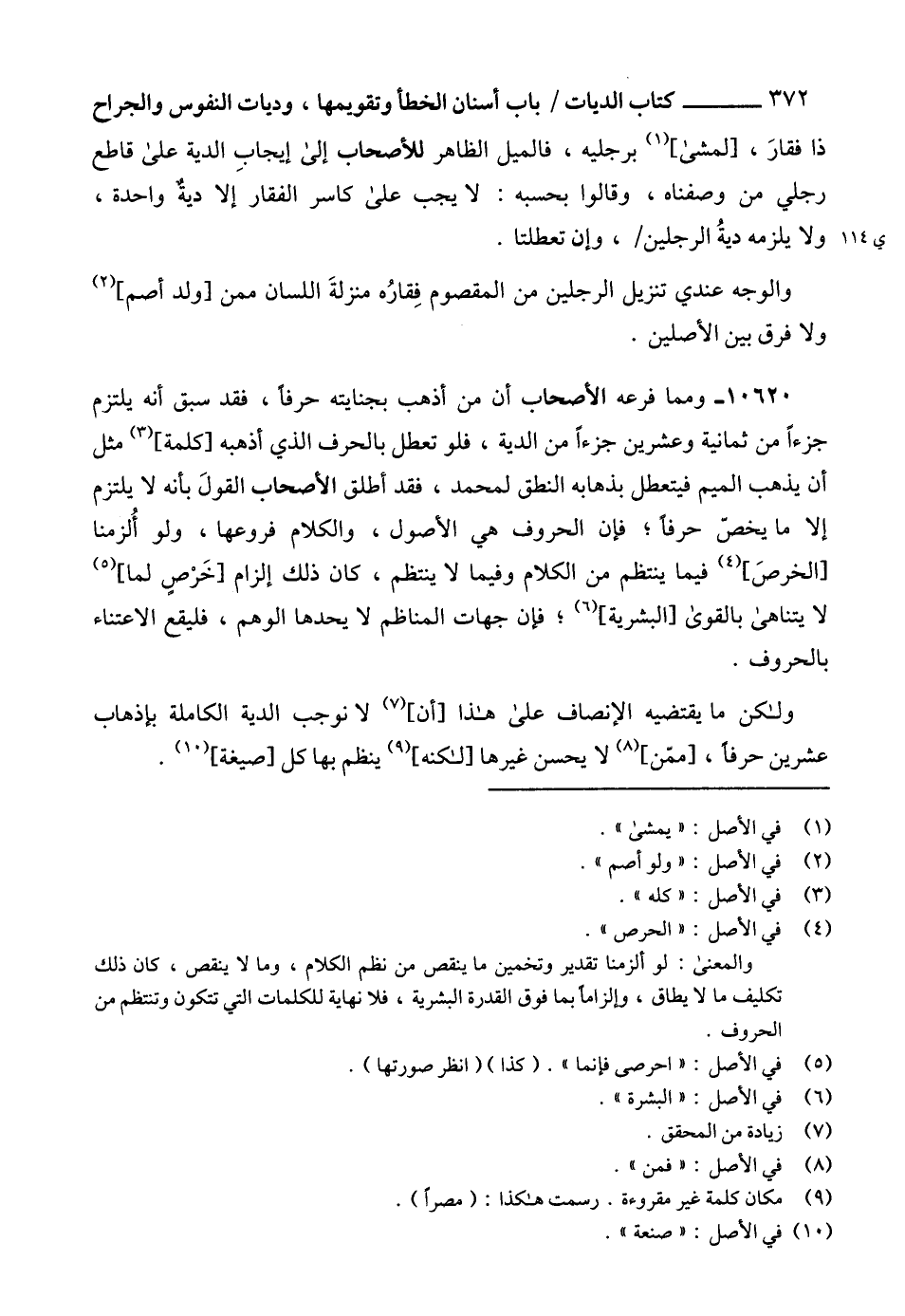 ولكن ما يقتضيه الإنصاف على هذا [أن] (7) لا نوجب الدية الكاملة بإذهاب عشرين حرفاً، [ممّن] (8) لا يحسن غيرها [لكنه] (9) ينظم بها كل [صيغة] (10).